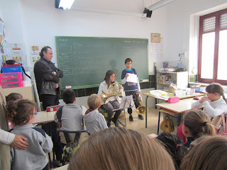 Pues hoy han sido dos alumnos de 6º , Lucía Fernández y Lucas Koch, los que han tocado la trompa!